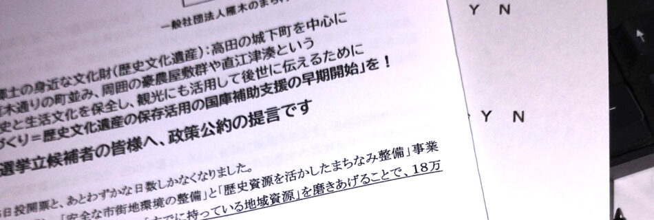 上越市長選挙候補者への歴史まちづくりに関する要望・提言